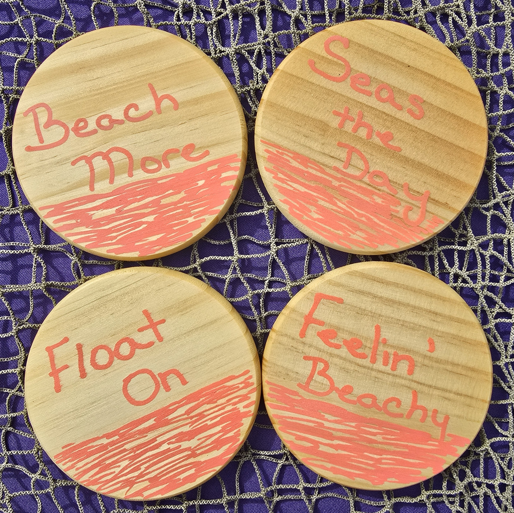 Coral Set of 4 Handcrafted Round Drink Coasters